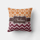 Orange Lattice Maroon Chevron Patterns Brown Name Cushion