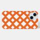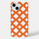 A bold, geometric pattern of large and small white diamonds on an orange background. The vibrant orange forms a lattice which separates the white diamond shapes.