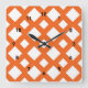 Orange Lattice on White Square Wall Clock
