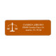 This orange custom law school graduation return address label features white typography for a class of 2024 graduate. Customise with your address next to the scales of justice for a great personalised lawyer or attorney mailing accessory.