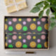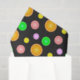 Unique fun birthday party gift Tissue paper. Gift Wrapping Supplies with Orange, lemon, lime and grapefruit summer party pattern. Different sizes of citrus fruit with bold yellow, orange, purple pink and green colours on dark grey.