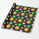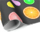 Unique fun birthday party gift wrapping paper. Orange, lemon, lime and grapefruit summer party pattern. Different sizes of citrus fruit with bold yellow, orange, purple pink and green colours on dark grey.