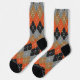 Argyle is trending. Orange Light Grey Tan Off Black Argyle with white stitching. The argyle pattern has long been recognised as a classic design that has stood the test of time. The repeated diamond-shaped pattern evokes a sense of sophistication and elegance, adding a touch of refinement to attire and accessories. Eclectic Grandpa and Jazz Revival are looks both trending in 2024 and argyle fits perfectly into that fashion trend. orange, brown, and grey argyle fabric, creating a classic preppy diamond pattern.