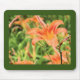 Enjoy this bright orange tiger lilies with green leaves on a warm summer day with forest green border while working or surfing the web on your computer.