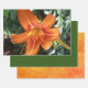 This 3-piece wrapping paper set a beautiful orange Lilly photo, then a solid green sheet followed by an orange glitter sheet. Use this paper set for your decoupage crafts or to wrap your gifts.