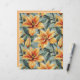 Orange lily flowers painted in a textured, brushstroke style over a muted blue background with green foliage. The design features large blooms with visible detail and depth, paired with a warm coordinating backside.