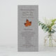 On a grey linen coloured background, and a large, monogrammed orange maple leaf accents this wedding program, making it perfect for the fall or autumn wedding.