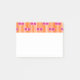 This Post-It notepad has a mid-century modern design of orange vertical lines with pink rectangles above repeated over the design.