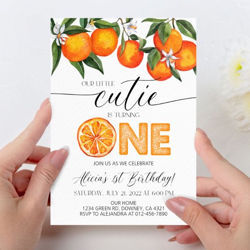 Orange Little Cutie Citrus 1st Birthday Party Invitation