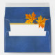 Orange maple leaves on blue rustic beach wedding envelope