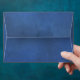 Orange maple leaves on blue stained grunge paper rustic wedding envelope featuring a gold stripe on blue and white background and orange maple leaves on the inside. This lovely fall wedding design with a vintage flair is part of a wedding set or collection and is a totally customisable template perfect for an autumn wedding.