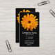 A clear stylish and attractive business card template with an attractive orange marigold motif. Main company details on the front, with name and personal contact on the back, with the same motif and style.