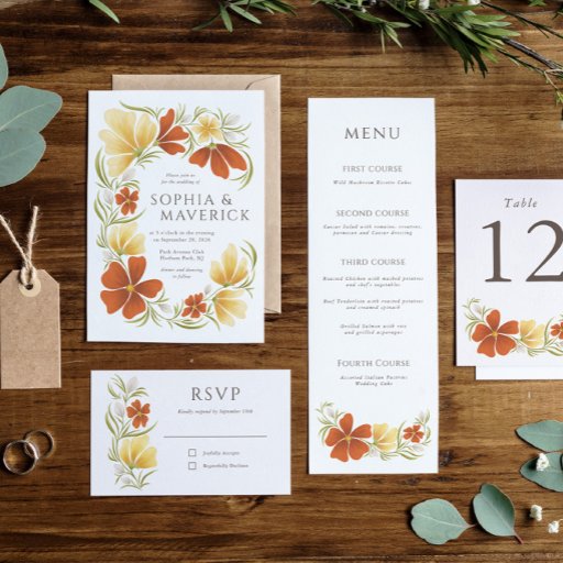 Orange & Marigold Bold Floral Wedding Invitation