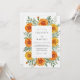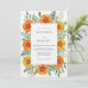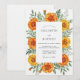 This design features a vibrant cascade of bright orange marigold blooms and lush green foliage. The artwork evokes a joyful, abundant feeling, perfect for a lively gathering. The dominant color palette is rich orange and fresh green.