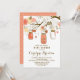 Whimsical baby shower invitation featuring beige and orange mason jars, heart strings, lovebirds and flowers. This invitation will be perfect for summer parties. Other colours and similar items are available in my store.