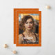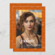 Elegant math graduation photo announcement with a orange and white math formulas and equations patterned background. Illustrated and designed by Patricia Alvarez.