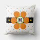 Take a journey to a bygone era with this vintage style mid-century flower power pillow. Inspired by the simple, colourful designs popular during the 1960s and 1970s, this pillow features a bright orange flower, black polka dots on a white background, and a customisable initial. This design is modern and minimalist, and it will add a retro touch to your living room, bedroom, porch, or patio. Modify the initial to fit your needs.