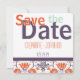 Mint Purple and Orange Persimmon Modern Floral Pattern Save the Date with your Photo