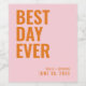 Orange Modern Best Day Ever Wedding Wine Label. Update with your names and date.