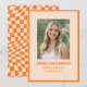 This modern retro graduation announcement features a bold orange checker border with a centered photo and clean typography. Designed for high school or college graduates, it highlights your senior portrait while keeping the layout structured and polished. Personalize with name, school, and class year for a cohesive 2026 graduation announcement. Coordinates with the matching party invitation and decor for a complete celebration set.
