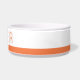Orange papaya mango colour personalised pet bowl for your dog or cat's food or water with a simple stripe border and modern font with space to type in your pet's name. Click 'customise further' to change the stripe colour or font.