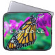 A close-up photo of a delicate, orange and black monarch butterfly resting on a bright magenta flower. Explore thoughts of warm, sunny days whenever you use this stunning, colourful photography neoprene laptop sleeve. This laptop sleeve comes in three sizes: 15", 13", and 10”. Makes a great gift for someone special!