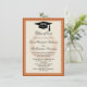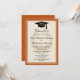 Orange background with mortarboard graduation cap, with monogrammed three letter initials. Classic grad invite for male or female college graduates, for trade school, graduate school, speciality major, high school or any level. This inexpensive, cheap value priced school colours graduation announcement or graduation ceremony invitation is perfect for inviting loved ones to an open house, reception, formal lor casual graduation party. Classic design features traditional laurel wreath emblem, personalised monogram, along with elegant script writing and old English style monogram. Extremely easy to personalise with your student's information. Formal and traditional classic style graduation invite for men or women, girls or boys of any age.