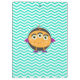 Cool, cute kids cartoon orange winged monster with three eyes and purple wings on aqua green; turquoise and white chevron stripes pattern.