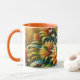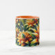 Orange mug with flowers glowing yellow and green
