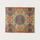 abstract mandala pattern made from orange mushrooms, red flowers and green leaves on a yellow background makes this elegant tapestry to hang on any wall in your home.