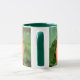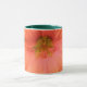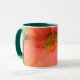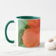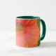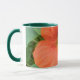 This beautiful mug features a detailed photograph of a pretty orange nasturtium flower surrounded by foliage. The photograph was taken using macro photography and shows the vibrant colour and intricate detail of this popular flower. The design is shown on a green ringer coffee mug, but is also available on several other styles and colours of mugs.