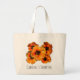 A bright and colourful digital design of 5 bright orange and yellow nasturtiums on a big tote bag. You can personalise it with your name.