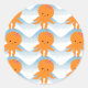 Orange Octopus And Blue Waves Pattern Classic Round Sticker