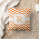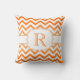 Orange Ombre and White Chevron Pattern Monogram Pillow. Personalise with your own initial.