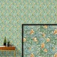 Orange on Aqua Teal Blue Art Nouveau Wallpaper