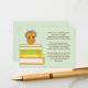 A cute little pink owl perches atop a stack of orange and green books on a minty green background in this neutral book request insert card. A charming poem requests that guests bring a book for the baby-to-be to start the new mum off with a library of beloved children's books. Just insert this sweet card inside the baby shower envelope, and your guests will know what's needed to start baby on the path towards reading.