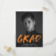Invite guests to celebrate the guests with our Modern Paint Splatter photo graduation party invites. The design features the graduate's vertical photo with "Grad" in orange lettering with white paint splatters. Personalise the front of the creative graduation party invitations by adding the graduate's name, school name, and graduation year. The back of the graduation party postcard features your return address and party details. The design is perfect to use for both high school and college graduates.