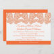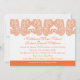 This fully customisable wedding invitation features a white background with a fresh summer orange paisley design. The reverse side has a matching orange background.