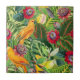 Orange Parrots in Tropical Flower Jungle Pattern Ceramic Tile