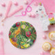 Orange Parrots in Tropical Flower Jungle Pattern Paper Plate