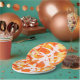 Bright orange confetti design puts a celebratory tone to any event. Art by Jeannine Romero for OutsideThePot.