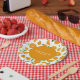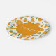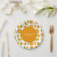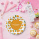 Paper Plates with a slice, half and full orange pattern. A customisable text is available at the centre on an orange background. A fresh decoration for a birthday party, a wedding, a housewarming party, a retirement, a bachelorette party, etc.