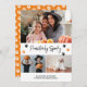 Custom orange photo Halloween card featuring a photo collage with a hand-lettered title and paw prints on the front and an orange background with paw prints at the back. Easily personalise this orange pet photo Halloween card with your images, a family name and the year. This cute Halloween card perfect for cat or dog lovers can be turned into any colour using the customisation tool.