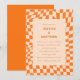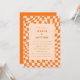 Orange Peach Wavy Chequerboard Retro Wedding Invitation