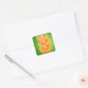 Orange pieces on green square sticker
