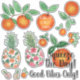 This artistic and pretty sticker pack is perfect for the summer season. It features hand-painted coral orange, pink, sage green, and forest green flowers and leaves that compose botanical pineapples and oranges. Along with the quotes, "Orange you glad its summer! Squeeze the day! and Good vibes only!" It's modern, girly, cute, and trendy; the perfect design for yourself, a friend, or a family member.