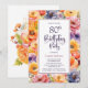 Orange Pink Floral 80th Birthday Party Invitation