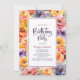 Invite your friends and loved ones to your birthday with this stylish orange and pink floral invitation. The customisable text area in this invitation template allows you to effortlessly include all the necessary details for your special birthday celebration, including the date, time, venue, and RSVP information. A variety of paper types and corner styles are available for your unique invitations, along with the option to download if you prefer a digital format.