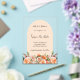 For an elegant and romantic wedding. A clear, transparent background decorated with orange, peach and pink florals. Arch shaped frame. Personalize and add your date, names and details.