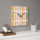 Orange Pink Gold and Green Stripes Square Wall Clock